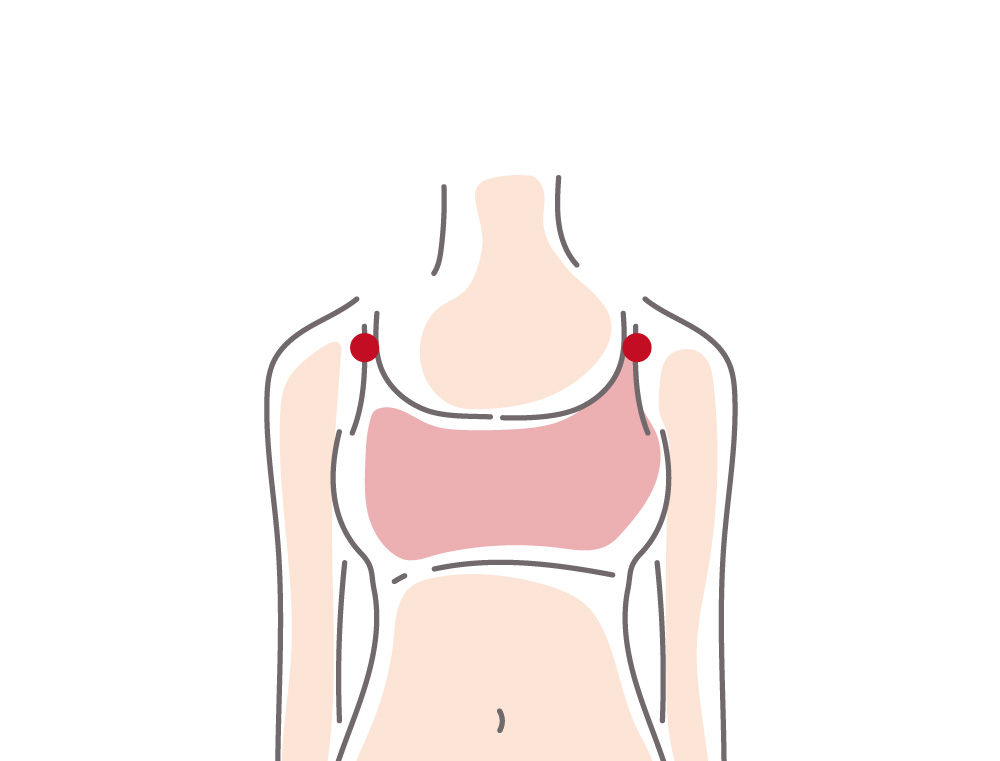 場所は、鎖骨と肩関節の骨の間の大きなくぼみの指幅1本分下の、押すと痛いところになります。