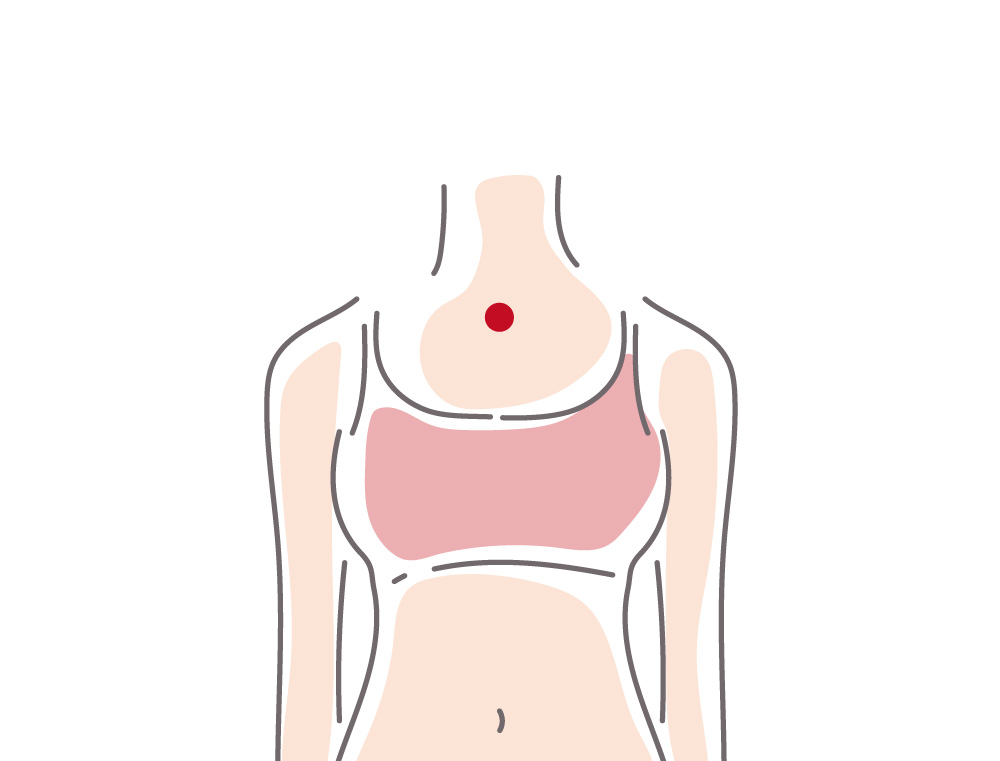 場所は、のどの下、左右の鎖骨の間で、胸骨の上端にあるくぼみを見つけ、指をくぼみの中に押し入れて痛いところになります。
